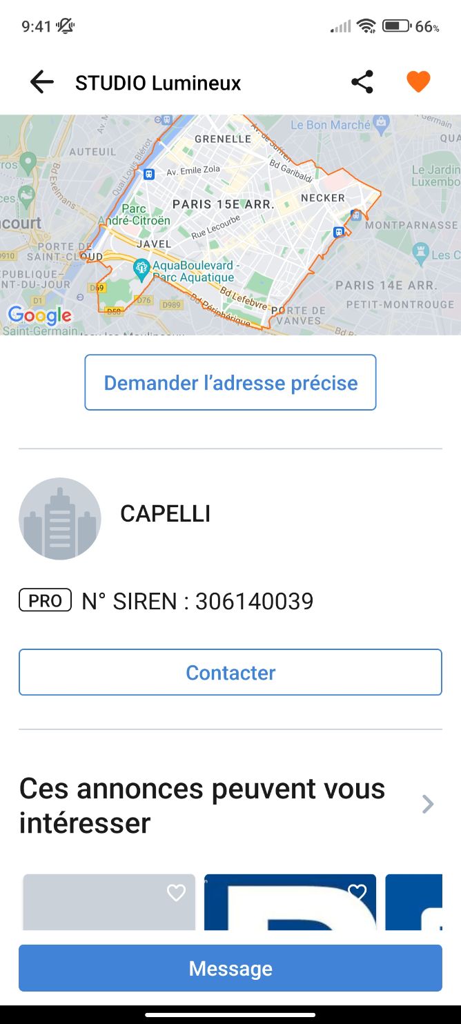Mention dans l’annonce de l’agence capelli, agence de Paris 8 à 1 étoile sur Google maps qui prend apparemment de l’argent pour ensuite ne pas livrer ses biens, ou en mauvais état